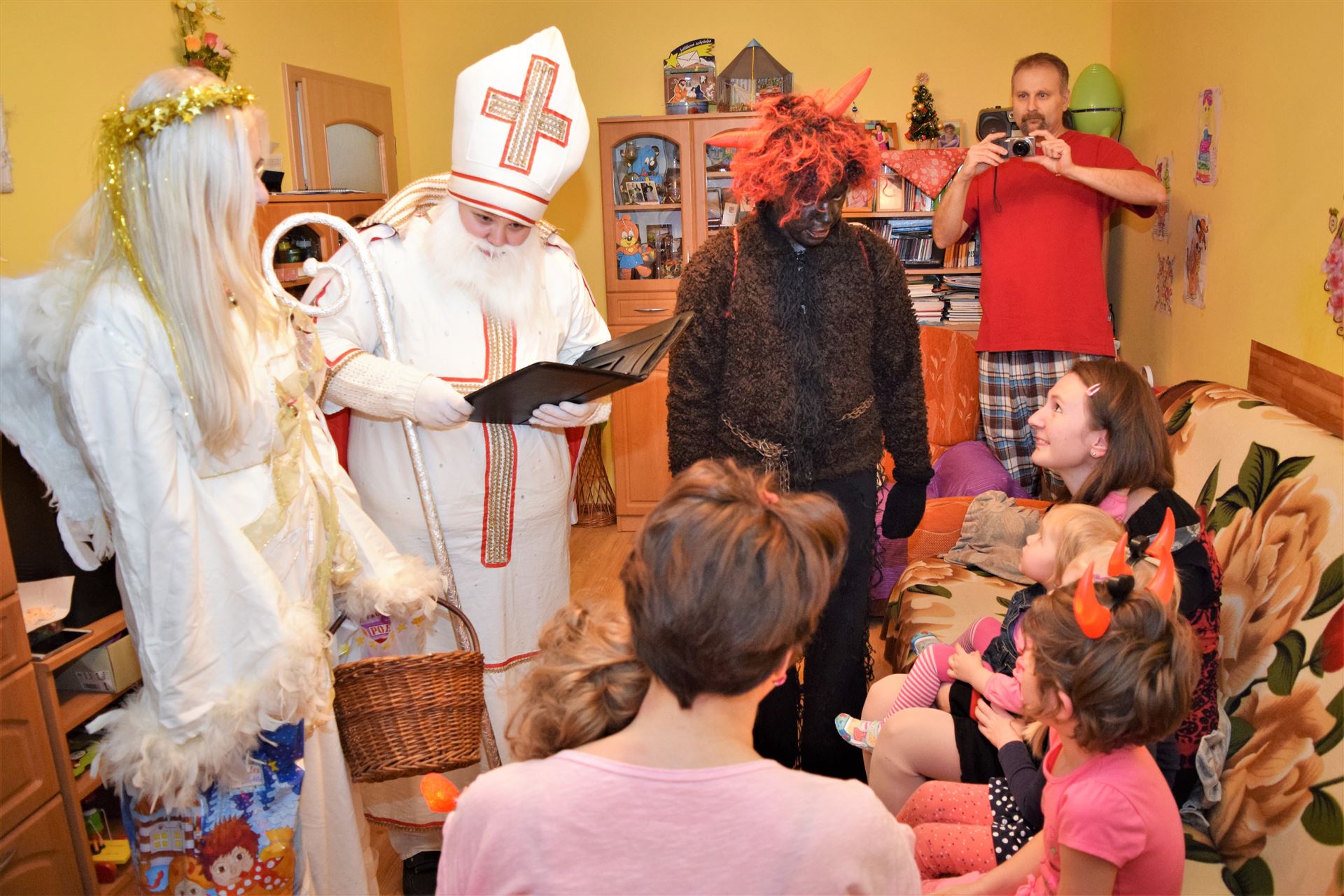 Každý rok si slibujeme, že se necháme více fotit, ale v tom shonu se to málokdy podaří. Sandra byla letos poprvé Mikulášem, taťka se tentokrát ujal rychlých převozů mezi rodinami, čertem byl Míša a Anička skutečným andílkem.